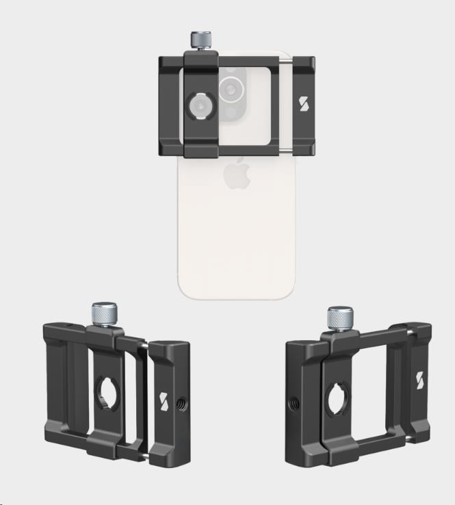 Svorka a adaptér objektivu jsou kompatibilní s telefony iPhone řady 12 / 13 / 14 / 15 / 16 a jsou vybaveny otvory se závitem 1/4"-20 pro upevnění na větší stativy, což nabízí všestranné použití.