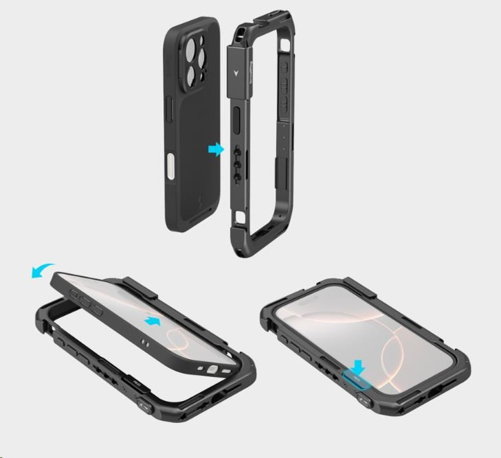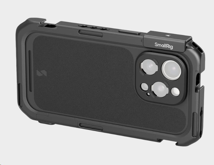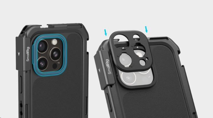 Telefon lze rychle upevnit do klece, která je vybavena několika otvory s 1/4"-20 závitem proti otočení a úchyty pro studenou patku, a rozšířit ji tak o příslušenství, jako jsou rukojeti, stativy, mikrofony a světla, což zvyšuje zážitek z fotografování, zatímco integrované rychloupínací rozhraní zajišťuje bezproblémové připojení.