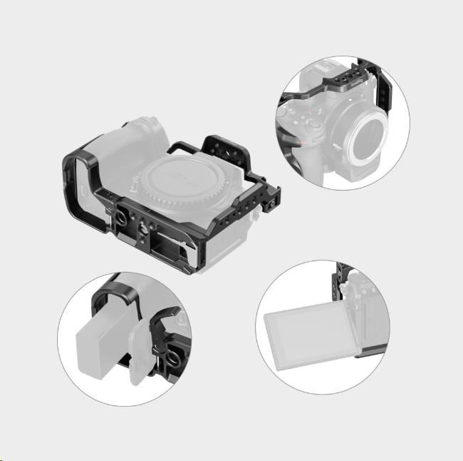 Klec je vybavená niekoľkými priechodkami s závitom 1/4"-20 a polohovacími otvormi 1/4"-20 na upevnenie príslušenstva, ako sú bočné rúčky Smallrig, magické ramená, svorky na HDMI káble, podpery monitoru a ďalšie.