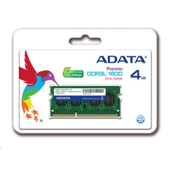 The Premier Series 1600 Mbps DDR3L 204-Pin (SO-DIMM) are standard pin design modules operating at 1.35 volts, with transmission bandwidth up to 12.8 Gb/second (PC3L 12800). The memory modules implement cutting edge technology that enables remarkable memory density on a single module. All the modules are in accordance with JEDEC (Joint Electron Device Engineering Council, JEDEC Solid State Technology Association) and RoHS design and production standards, simultaneously ensuring compatibility with all the computer systems adopting the same standard and ecologically sound product. ADATA Series memory modules come with lifetime warranty and service, providing remarkable protection.