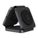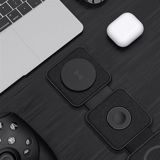 Rozkladacia plocha s výkonom 3 W je sklápacia a ideálna pre Apple Watch, zatiaľ čo tretia plocha slúži na nabíjanie bezdrôtových slúchadiel alebo ďalšieho telefónu. Celé telo nabíjačky Solight 3v1 je pokryté prémiovým textilným povrchom doplneným o prvky s mäkkým dotykom. Tento dizajn nielen skvele vyzerá, ale aj chráni vaše zariadenie pred poškrabaním. Na dosiahnutie optimálneho výkonu sa odporúča používať s PD adaptérom s výkonom 25 W.