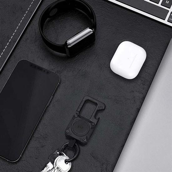 Vďaka tejto štýlovej kovovej kľúčenke budete mať svoje kľúče, batoh alebo iné cennosti vždy bezpečne pod dohľadom. Kľúčenka v sebe spája Bluetooth lokátor kompatibilný s Apple Find My a praktický otvárač na fľaše. Štýl, bezpečnosť a funkčnosť v jednom!