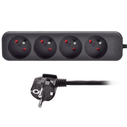 Praktický čierny predlžovací kábel s dĺžkou 3 metre a štyrmi zásuvkami umožní dodať elektrickú energiu tam, kde nie je dostupná pevná zásuvka. Ideálny na domáce aj kancelárske použitie.