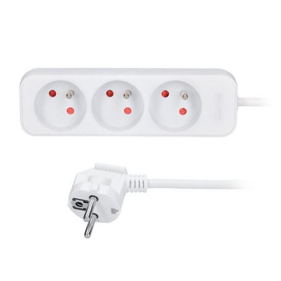 Praktický biely predlžovací kábel s dĺžkou 5 metrov a tromi zásuvkami umožní priviesť elektrickú energiu tam, kde nie je k dispozícii pevná zásuvka. Ideálny pre domácu aj kancelársku využitie.