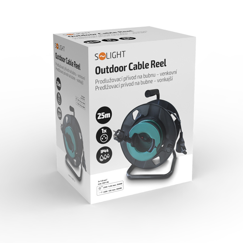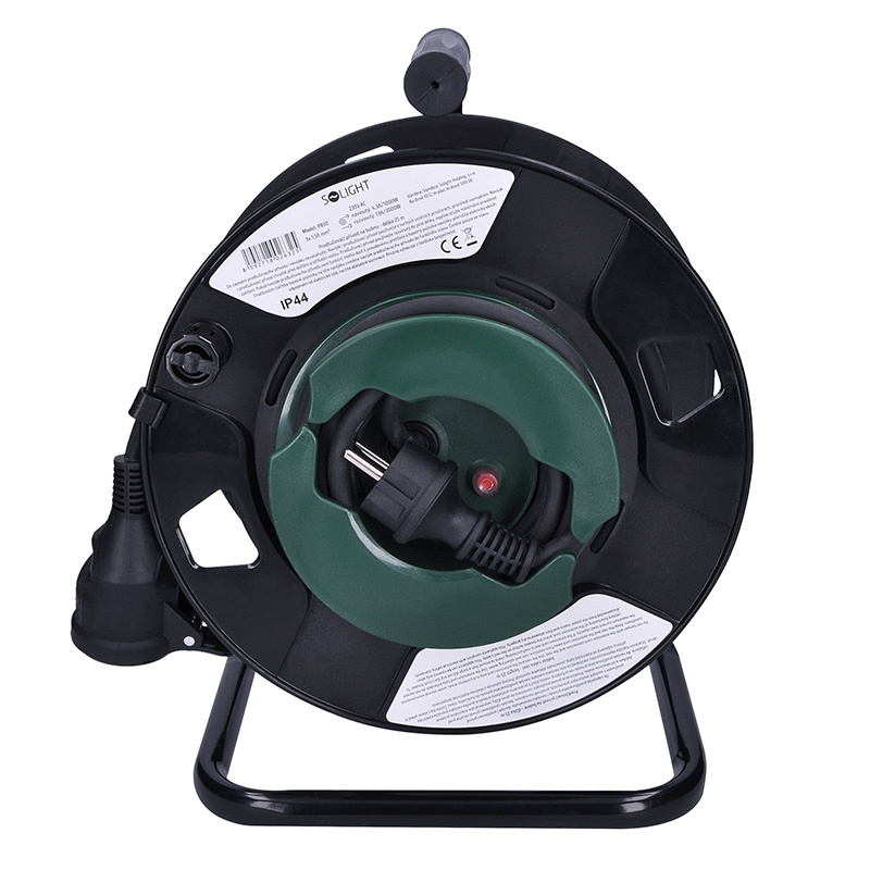 Gumený kábel s vodičmi o priečnom odstupe 3×1,5 mm2 je vhodný na vonkajšie aj vnútorné použitie. Buben je vybavený zásuvkou s detskou poistkou a tepelnou poistkou, ktorá zabezpečuje bezpečnosť pri preťažení alebo neúplnom odvinutí kábla. Produkt spĺňa stupeň krytia IP44, ktorý zabezpečuje ochranu proti jemnému postreku vodou.