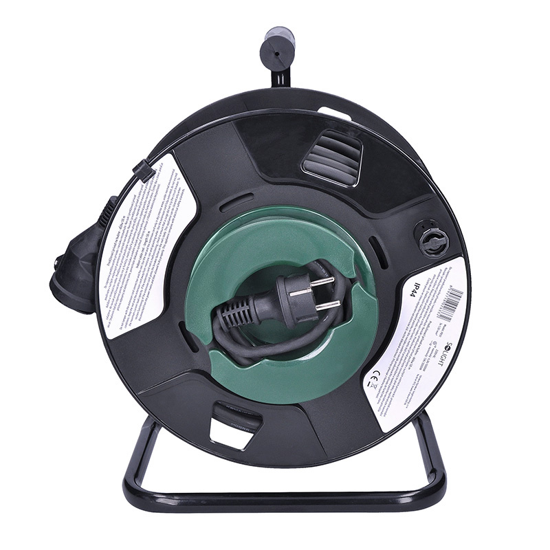 Gumený kábel s vodičmi o priemere 3×1,5 mm2 je vhodný na vonkajšie použitie aj vnútorné priestory. Cievka je vybavená zásuvkou s detskými poistkami a tepelnou poistkou, ktorá zabezpečuje bezpečnosť pri preťažení alebo neúplnom odvinutí kábla. Produkt spĺňa stupeň krytia IP44, ktorý zaisťuje ochranu proti striekajúcej vode.