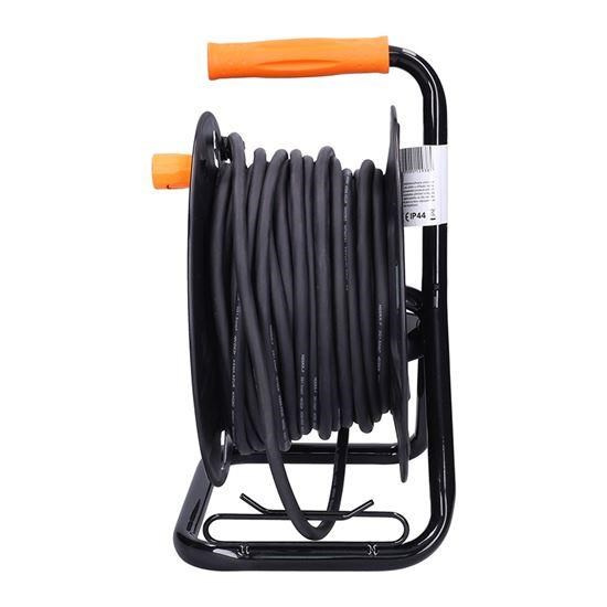25m gumový kábel na bubne z odolného plastu a štyrmi zásuvkami je ideálny na použitie vonku, na záhradách, stavbách alebo v dielňach. Pevná konštrukcia s krytými zásuvkami aj samotný kábel sú odolné voči poveternostným podmienkam a mechanickému namáhaniu.