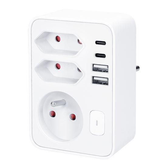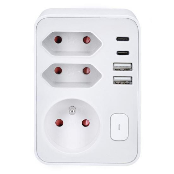 Tri zásuvky (1× 16 A + 2× 2,5 A) zvládnu celkovú záťaž až 3680 W a umožnia pripojiť bežné spotrebiče v obývačke, spálni alebo pracovni. Zásuvky sú navyše vybavené detskými poistkami, čo zabezpečuje bezpečný prevádzku aj v domácnostiach s deťmi. Vďaka dvom USB-A a dvom USB-C portom môžete pohodlne nabíjať až štyri zariadenia súčasne – s celkovým výkonom až 17 W. Perfektné pre všetku USB elektroniku.
