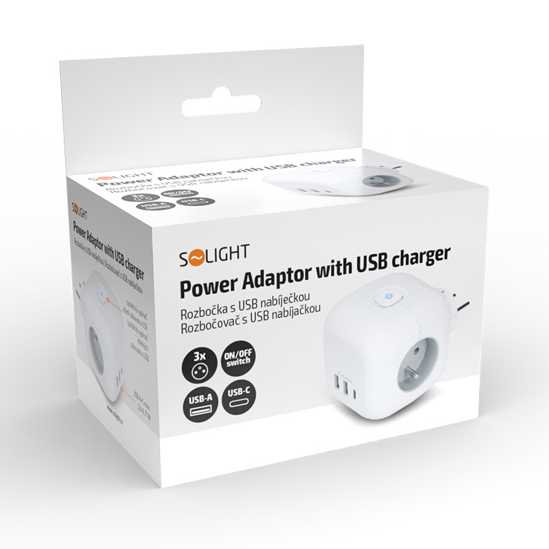 Akčné ponuky na váš e-mailKompaktný dizajn a jednoduché použitie Rozbočka v tvare kocky s dĺžkou strany 8 cm spája tri uzemnené zásuvky s detskou poistkou a USB nabíjačku s portmi USB-C a USB-A. Vďaka kompaktnému prevedeniu je ideálna na použitie v akomkoľvek interiéri. Podsvietený vypínač umožňuje jednoduché ovládanie všetkých zásuviek aj USB portov.