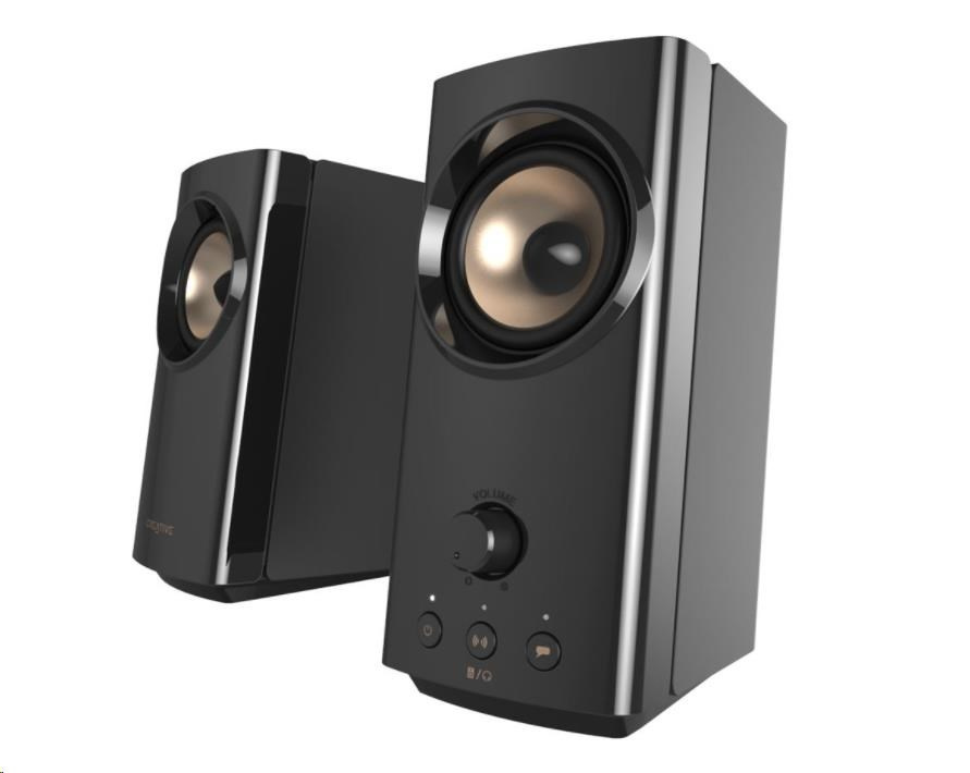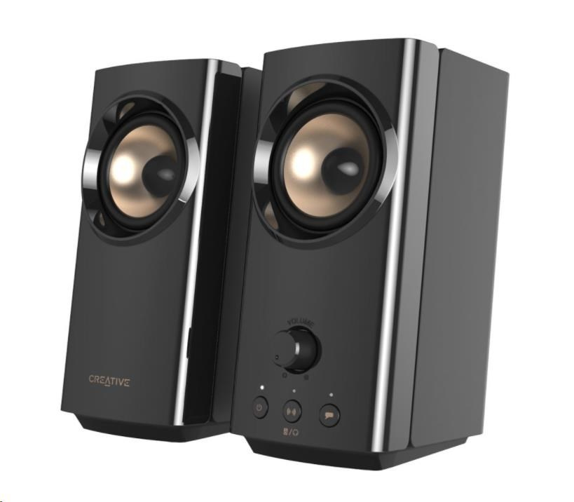 Akčné ponuky na váš e-mailKompaktné stolové reproduktory Hi-Fi 2.0 s funkciou Clear Dialog a Surround od spoločnosti Sound Blaster pre počítače a notebooky