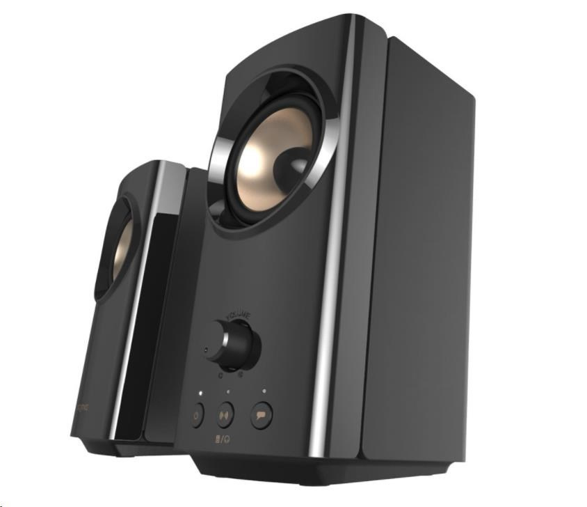 Bezdrôtové rozhranie Bluetooth® 5.0 Slúchadlá/náhlavná súprava Mikrofón 3,5 mm vstup AUX-in Už vás nebaví neustále pripájať a odpájať náhlavnú súpravu z reproduktorov stolného počítača a striedať prehrávanie zvuku z reproduktorov a náhlavnej súpravy? So zariadením Creative T60 už nikdy nič podobné nezažijete! Pomocou tlačidla pohodlne umiestneného na prednej strane reproduktora môžete okamžite prepínať medzi prehrávaním zvuku zo zariadenia Creative T60 alebo zo slúchadiel. A to nie je všetko! Na pravom reproduktore nájdete gombík na nastavenie hlasitosti, tlačidlá Clear Dialog a Surround na aktiváciu zvukových technológií stlačením tlačidla a tlačidlo napájania na zapnutie reproduktora alebo prepínanie medzi zdrojmi zvuku. Reproduktorový systém Creative T60 je dokonalý stolný reproduktor 2.0 do vašej izby. Čistý a elegantný vzhľad, ktorý ladí s monitorom a zaberá väčšinu drahocenného priestoru na stole. V kombinácii so všetkými akustickými funkciami a možnosťami pripojenia umožňuje tento reproduktorový systém Creative T60 jednoducho a bezproblémovo vylepšiť predvolený zvuk vášho stolného počítača alebo notebooku. Rozmery Dĺžka kábla Hmotnosť Prevádzková teplota Výstupný výkon Meniče Frekvenčný rozsah Konfigurácia systému Odstup signálu od šumu Pracovná frekvencia Bluetooth Prevádzkový dosah zariadenia Bluetooth Verzia Bluetooth® Profil Bluetooth Podporované kodeky Typ konektora Farba Verzia