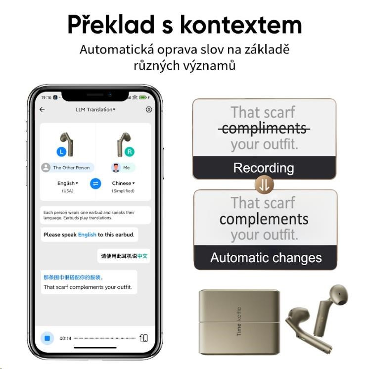 Akčné ponuky na váš e-mailPrekonajte jazykové bariéry v reálnom čase s AI tlmočníkom a prekladateľom Timekettle W4. Podporuje obojstranný preklad v 42 jazykoch a 95 dialektoch, takže konverzácie medzi rôznymi Kultúrami sú plynulé a prirodzené. Či už cestujete, pracujete alebo spoznávate nových ľudí, W4 zabezpečí, že každé slovo bude správne pochopené. Rozlúčte sa s trapnými pauzami a jazykovými nedorozumeniami – stačí hovoriť a AI sa postará o zvyšok. Komunikujte slobodne a sebaisto kdekoľvek na svete bez jazykových obmedzení. Presnosť prekladu je až 98 % a AI slovník na princípe veľkých jazykových modelov (LLM) zabezpečí vďaka perfektnému porozumeniu presnú opravu podobne znejajúcich slov a celkovému porozumeniu kontextu konverzácie. Táto aplikácia Timekettle vám navyše z konverzácie vytvorí prepis a AI shrnutie.