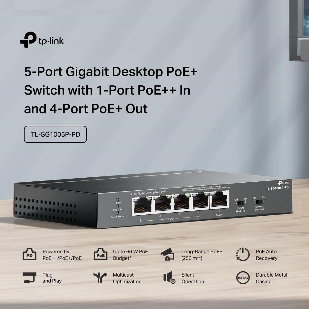 Akčné ponuky na váš e-mailPodporuje výstupný PoE výkon až 66W/47W/21W/9W PoE pri napájaní z 802.3bt Type 4 (90 W), 802.3bt Type 3 (60 W), 802.3at alebo 802.3af PoE v tomto poradí.* Switch PoE-PD automaticky detekuje požadované napájanie PoE pre vaše zariadenie a chráni vaše zariadenia bez PoE pred poškodením.