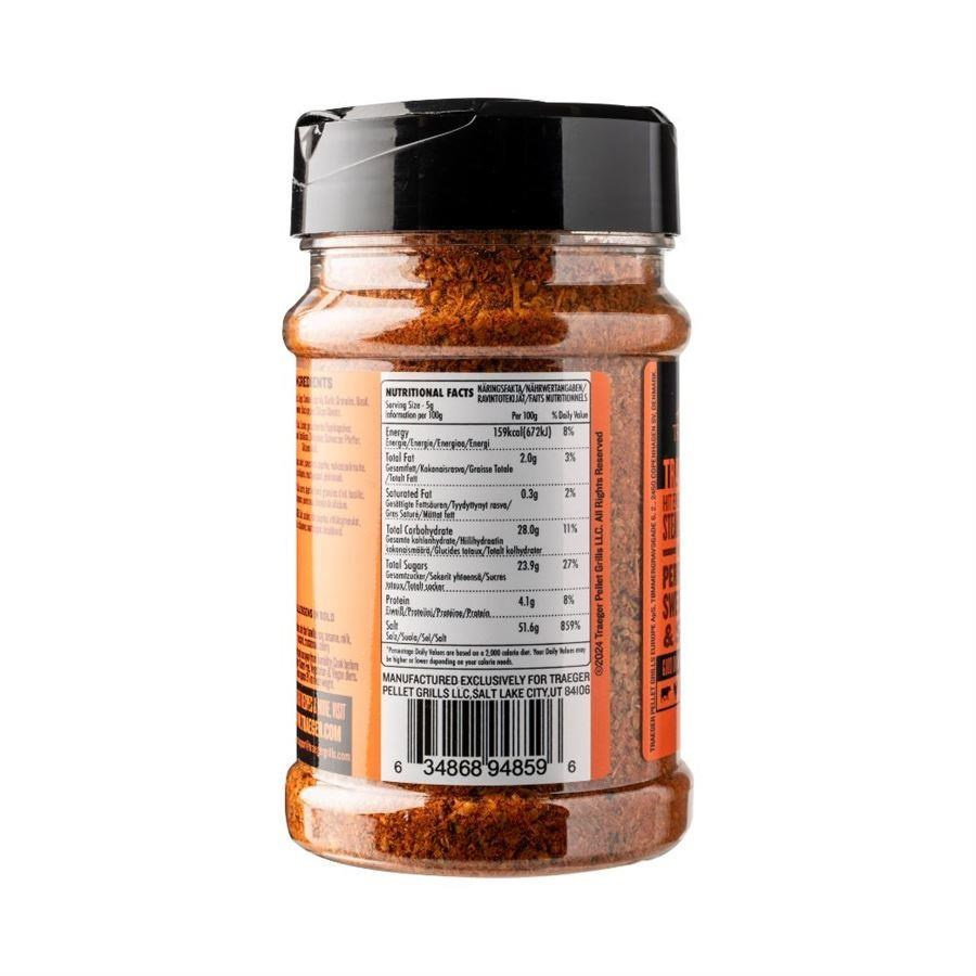 Akčné ponuky na váš e-mailNaše korenie Traeger Rub predstavuje dokonalú zmes sladkej, slanej a pikantnej chuti, ktorá zvýrazní chuť akéhokoľvek mäsa, na ktoré ho nanesiete. Pikantný cesnak sa snúbi s bylinkovými tónmi bazalky a oregána a jemnou dymovou chuťou papriky a chilli papričiek, ktoré dopĺňajú všetko od libového kuracieho mäsa až po výraznú hovädziu hrudu.
