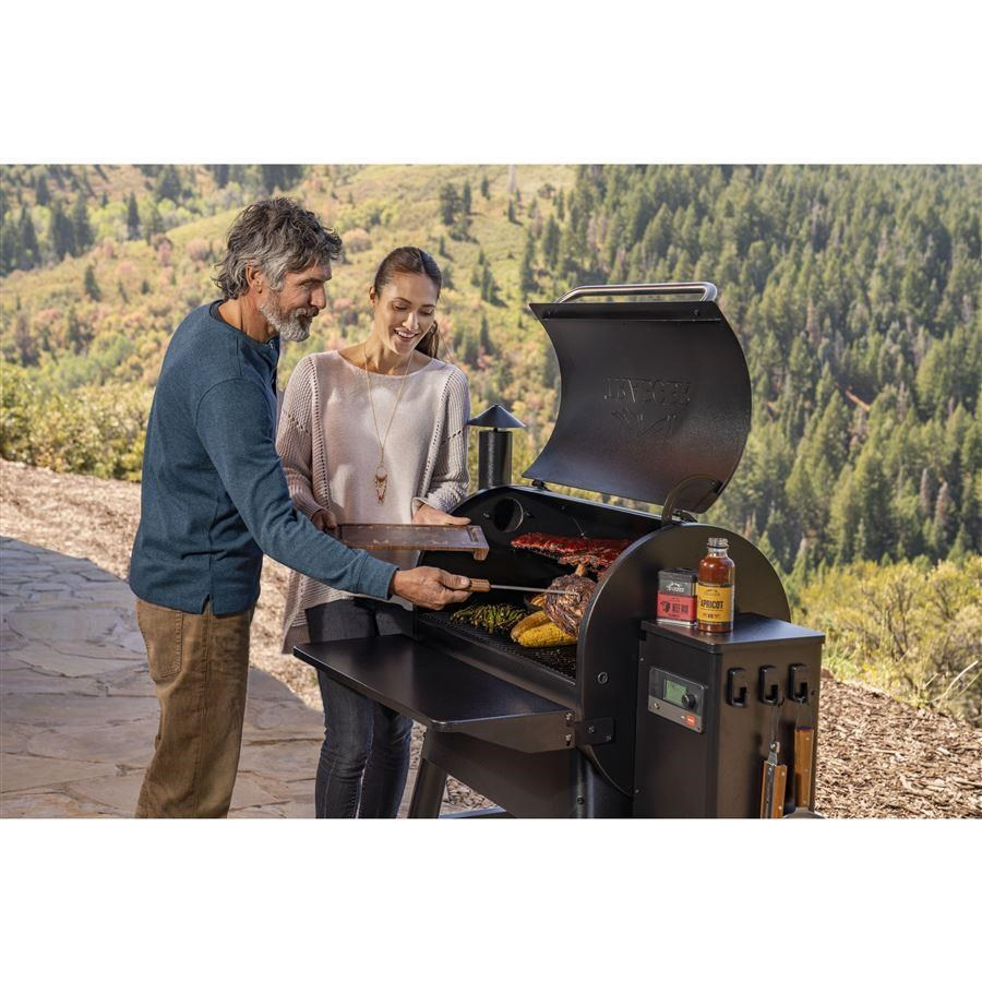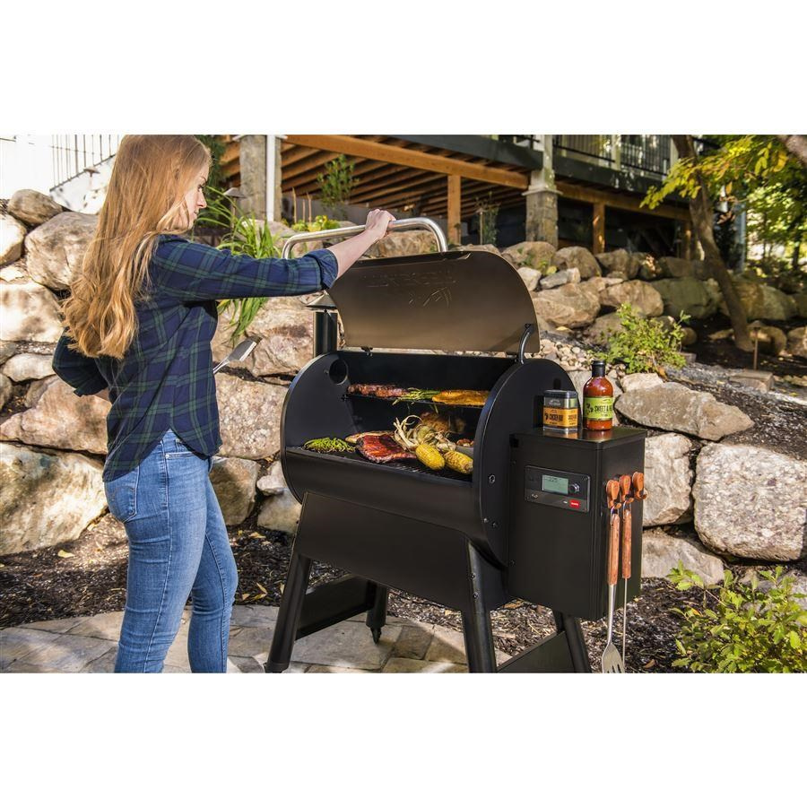 Tento elektrický gril na drevené pelety ponúka všestranný teplotný rozsah od 165 °F do 500 °F, ideálny na presné údenie, pečenie, grilovanie a BBQ. S napätím 120 V AC a výkonom 95 W sa rýchlo zahrieva a udržiava konštantnú teplotu. Jednoducho ho zapojíte do najbližšej zásuvky pomocou priloženého 6stopového napájacieho kábla D2 NEMA. Vďaka pripojeniu WiFIRE® môžete sledovať varenie odkiaľkoľvek pomocou aplikácie Traeger. Má zásobník na pelety s kapacitou 18 libier a pohodlné čistenie zásobníka uľahčuje rýchlu zmenu príchutí pelet. Pre dostatok miesta na varenie sú k dispozícii dve rady porcelánom potiahnutých oceľových roštov s celkovou variacou plochou 780 štvorcových palcov. Súčasťou balenia je aj jedna sonda na mäso Traeger, ktorá uľahčuje kontrolu vnútornej teploty mäsa.