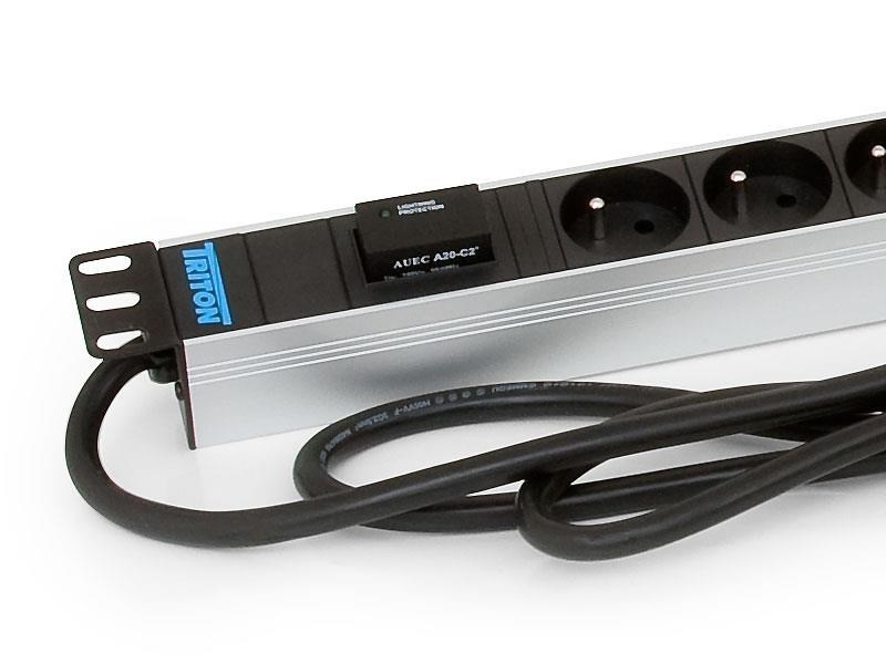 Popis TRITON 19" rozvodný panel 24x230V zásuvka, 2m kabel,16A IEC60309, černý