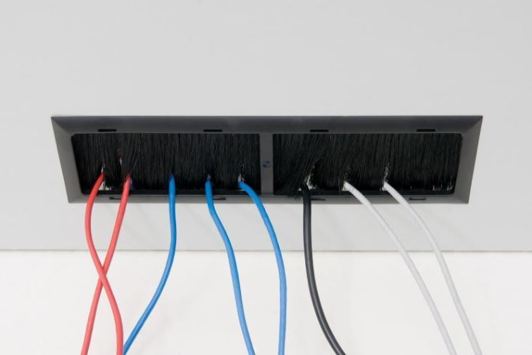 Káblové vstupy v zadnej časti rozvádzača sú zakryté vylamovacími záslepkami. Proti prachu je možné káble v otvoru utesniť záslepkou s kefkou. Na ochranu káblov pred poškodením slúži plastový rámček (obe sú súčasťou príslušenstva rozvádzača).