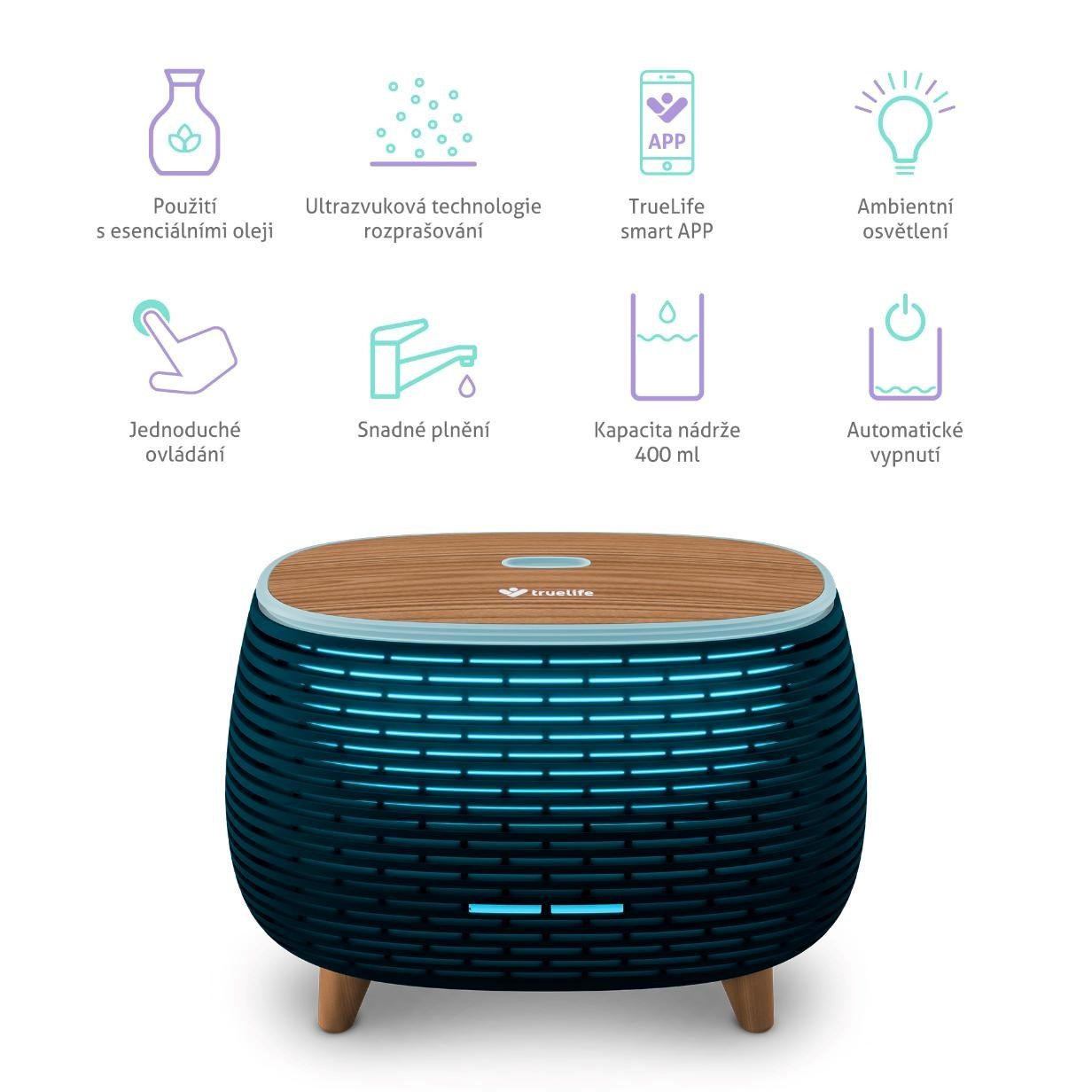 Difúzer je možné prepojiť cez Wi-Fi s mobilnou aplikáciou TrueLife Smart a jej prostredníctvom ovládať.