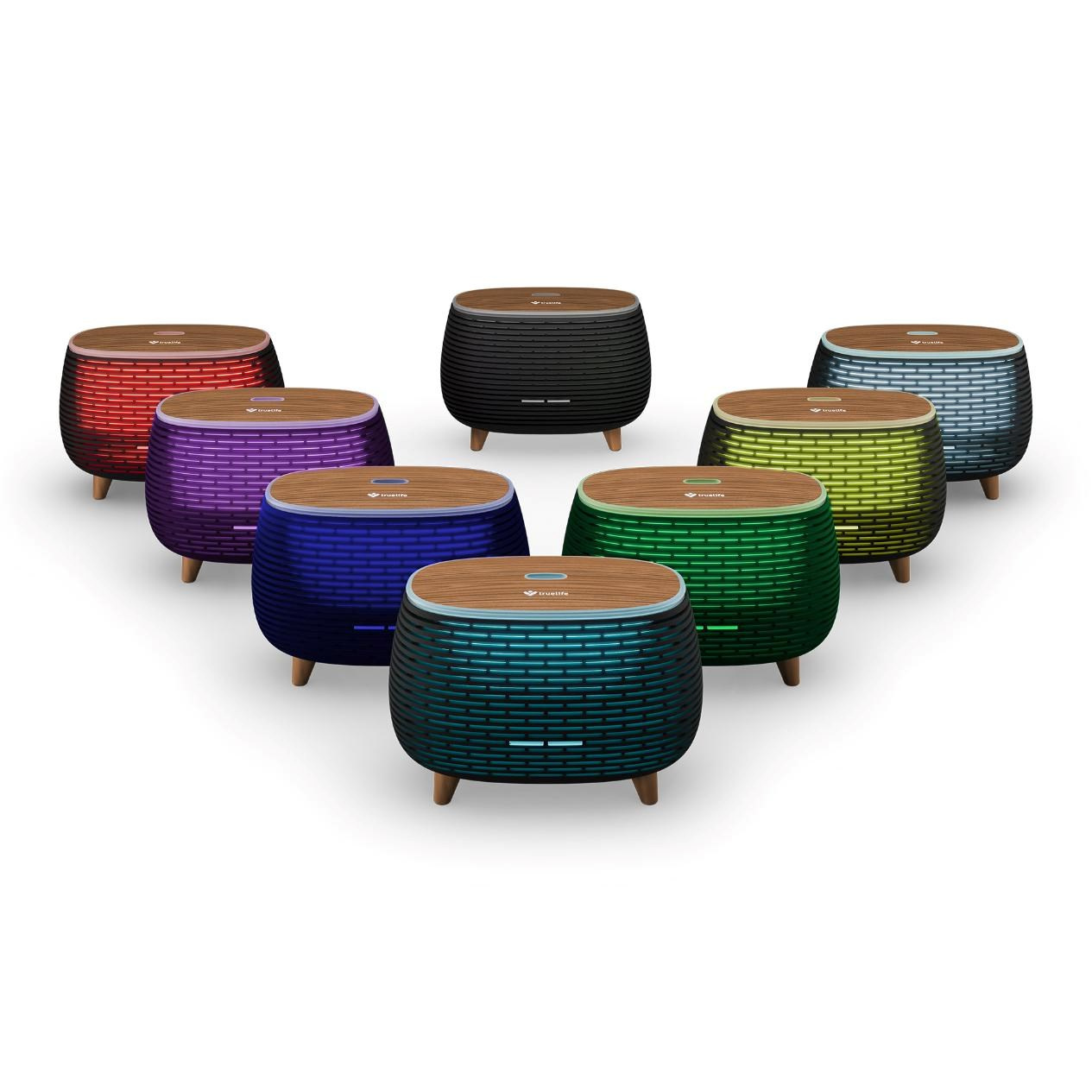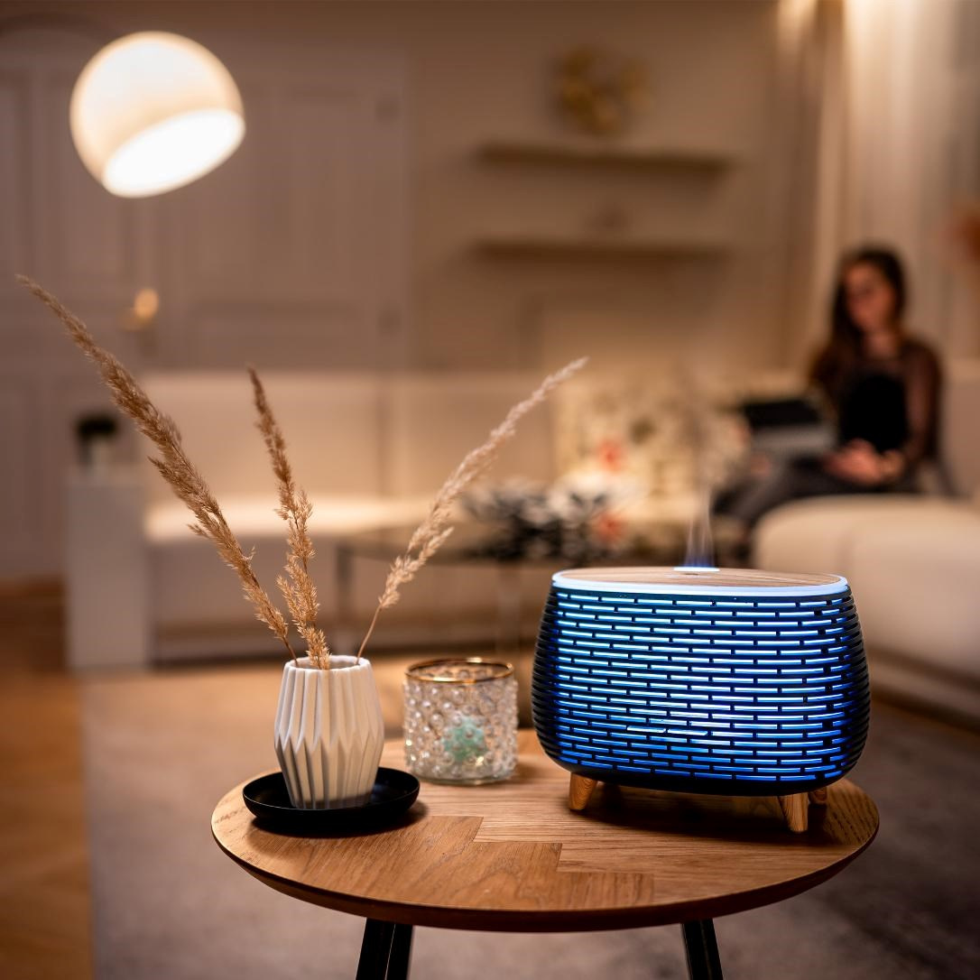 Terapia vôňou aj farbami vás uvoľní, upokojí alebo napríklad naopak naštartuje vašu produktivitu. Nádržku s objemom 400 ml stačí naplniť vodou na zvlhčenie vzduchu alebo pridať niekoľko kvapiek esenciálneho oleja a užívať si aromaterapeutické účinky. Ambientné osvetlenie ponúka 7 farieb nastaviteľných v rôznych režimoch, od statických farieb po plynulé prechody medzi všetkými farbami. Dokonale tak vyladíte atmosféru podľa svojich potrieb.
