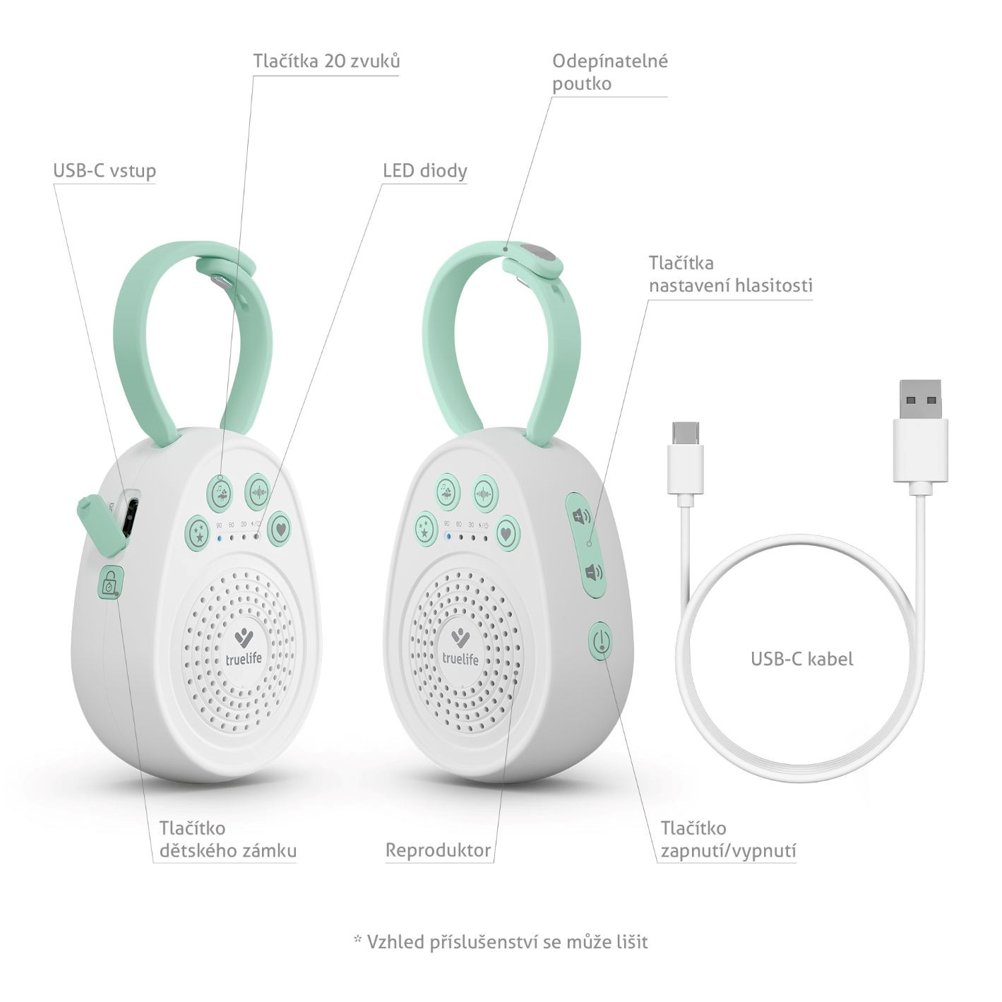 Spokojný spánok dieťatka je pre rodičov prioritou, veď aj ten ich je potom o poznanie kvalitnejší. Niekedy ale býva náročné už uspávanie, pri ktorom to všetko začína, preto TrueLife prináša pomocníka v podobe prenosného uspávacieho modulu BabyTone S3. Bábätká sú zvyknuté na rôzne zvuky, šumy a predovšetkým tlkot srdca známy počas mesiacov v bezpečí pod srdcom mamičky, určite teda medzi 20 prednastavenými nájdete taký, ktorý ho spoľahlivo upokojí nielen doma, ale napríklad aj na cestách. Pomocou odnímateľného pútka uspávačik pripnete, kam je treba, nastavíte časovač, hlasitosť a bábätko môže spokojne snívať. Dobíjacia batéria vydrží až 100 hodín, potom stačí dobiť pomocou USB-C. Modul je vyrobený z nezávadných plastov a veľmi ľahko a intuitívne sa ovláda pomocou 4 tlačidiel. Vybavený je aj detským zámkom, keby sa s ním dieťa začalo hrať. Vaša posledná odohraná melódia sa uchová v pamäti a po zapnutí sa automaticky spustí ako prvá.