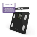 Váha vyhodnotí a v aplikácii vytvorí prehľad 15 merateľných telesných indexov ako hmotnosť, BMI, percento tuku a vody v tele, množstvo bielkovín a minerálov, somatotyp, metabolický vek či BMR/AMR.