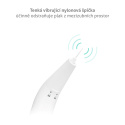 Tenká vibrujúca nylonová špička má na konci guličku, ktorá napomáha vytiahnuť šetrne zvyšky jedla z medzizubných priestorov.