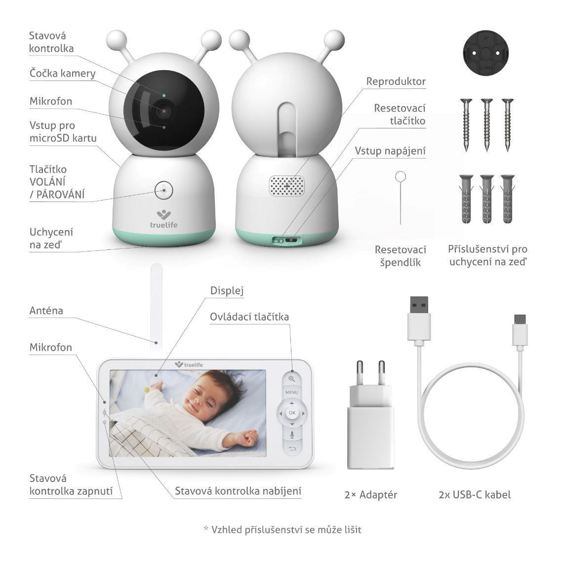 Rotačná pestúnka sa so svojim dizajnom skvele hodí do detskej izby – dieťa nijak neruší, naopak ho vie upokojiť. Prehrá uspávanky, dokáže napodobniť tlkot srdca alebo vďaka možnosti obojsmernej komunikácie môžete dieťatko upokojiť vlastným hlasom. K bezstarostnému spánku prispieva tiež funkcia nočnej lampičky s kompletným spektrom farebného podsvietenia a niekoľkými efektami. Flexibilné univerzálne uchytenie poskytuje širokú škálu možností na umiestnenie pestúnky. Balenie obsahuje súpravu pre uchytenie na stenu, prípadne je možné dokúpiť špeciálny držiak TrueLife NannyCam Holder, vďaka ktorému viete pestúnku pripevniť napríklad ku rámu postieľky. Ak je to potrebné, ku rodičovskej jednotke máte možnosť pripojiť ešte druhú kameru alebo ku aplikácii dokonca až 16 kamier.
