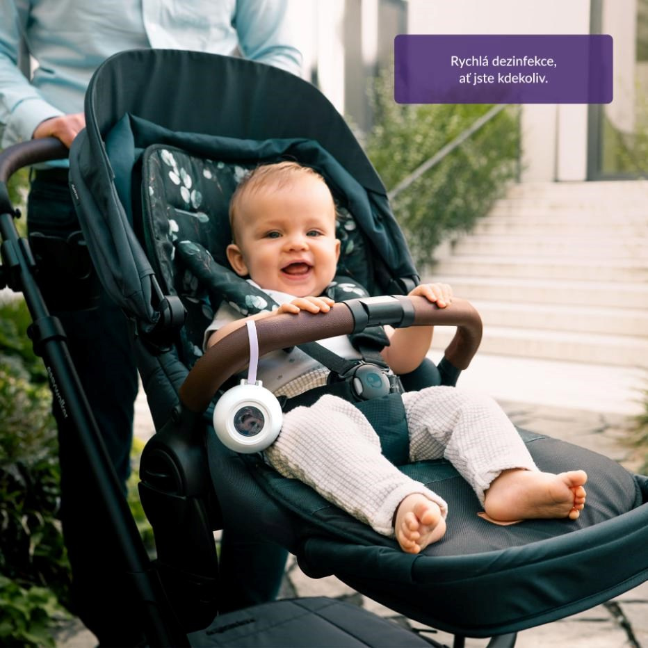 S hmotnosťou len 73 gramov a kompaktnými rozmermi sa sterilizátor zmestí do každej tašky alebo kabelky. Silikónové poutko umožňuje jednoduché prichytenie napríklad na kočík, takže ho budete mať vždy po ruke. A keď práve nie je potrebné sterilizovať cumlík, zvládne rýchlo vydezinfikovať aj menšie predmety, ako sú šperky alebo drobné doplnky.