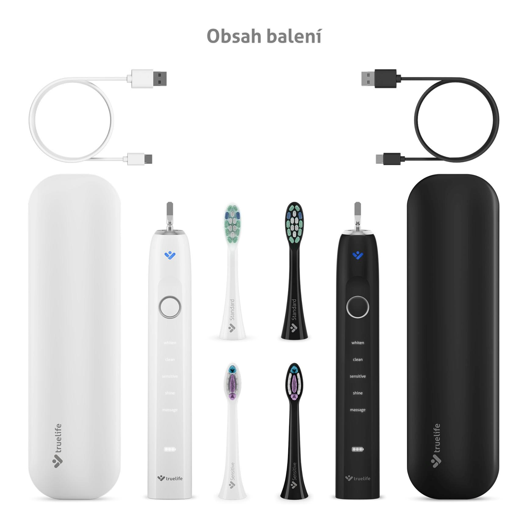 Akčné ponuky na váš e-mailZdravý úsmev je vizitkou nás všetkých. S balením dvoch sonických kefiek TrueLife SonicBrush Clean70 UV Duo bude starostlivosť o zuby a ďasná nielen dôkladná, ale navyše aj príjemná. Každá z kefiek čistí zuby rýchlosťou až 90 000 pohybov za minútu, čím odstráni až 12× viac zubného povlaku ako manuálna kefka. Sonická technológia SonicTrue® jemnými vibráciami čistí plôšky zubov a vďaka víreniu vody s pastou vytvára mikrobublinky, ktoré preniknú aj do medzizubných priestorov. Tlakový senzor s technológiou SmartPressure® stráži ideálny tlak a varuje pred nadmerným zaťažením ďasien či skloviny. Dobíjacie puzdro s UV sterilizáciou efektívne ničí až 99,9% baktérií a vírusov na hlaviciach. Kefky vydržia až 70 dní na jedno nabitie, disponujú 5 režimami čistenia a 2 typy hlavíc (Standard a Sensitive). Chytrý časovač stráži odporúčané 2 minúty čistenia a funkcia pamäte uchová posledný zvolený režim. Vďaka vysoko citlivému vibračnému senzoru sa kefka automaticky aktivuje a rozsvieti, akonáhle ju vezmete do ruky. Špeciálna jemne pogumovaná povrchová úprava rukoväte je príjemná na dotyk a zabraňuje kĺzaniu aj pri použití s vodou.