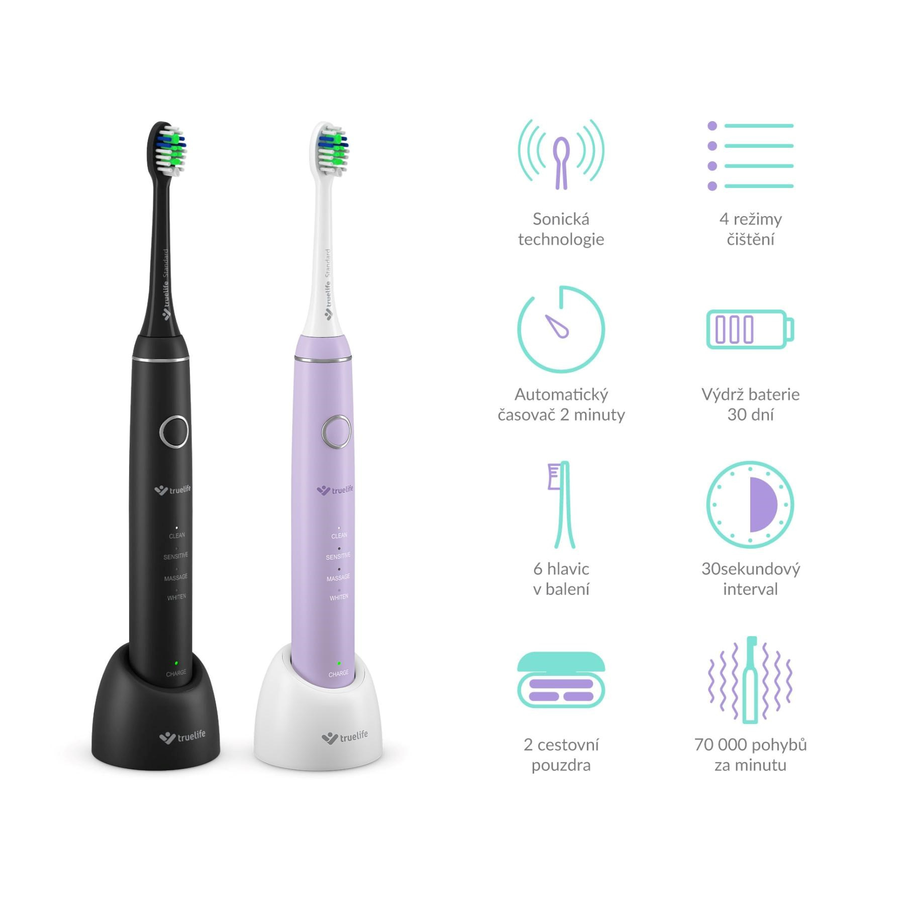 Hlavice kefiek kmitajú rýchlosťou 70 000 pohybov za minútu. Jemné vibrácie nedajú šancu zubnému plaku, pigmentovým škvrnám ani baktériám. Sonická technológia SonicTrue® je oproti rotačným kefkám šetrnejšia ku zubnej sklovine. Kefka zároveň víri pastu s vodou, vháňa ich do medzizubných priestorov, a tým ich pomáha čistiť.