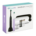SonicBrush Compact sa vám so svojimi malými rozmermi vojde do každej tašky. Prvotriednu zubnú hygienu si tak môžete užívať aj na cestách. Nabíjacie stojanček môže zostať doma. Batéria v kefke vydrží až 30 dní čistenia. Svojím minimálnym dizajnom doplní vašu kúpeľňu a jediné tlačidlo zabezpečí jednoduché ovládanie.