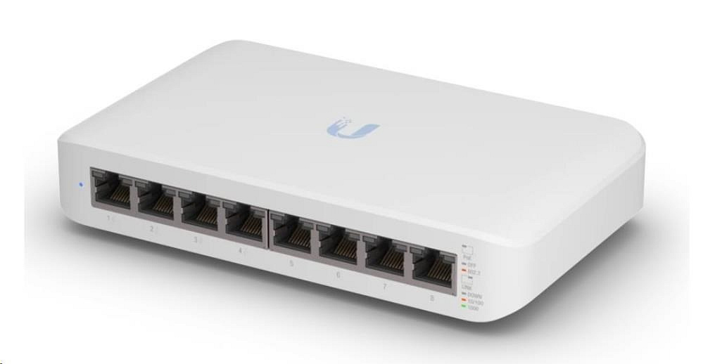 USW-Lite-8-PoE je gigabitový PoE L2 prepínač od spoločnosti Ubiquiti Networks v stolnom vyhotovení s maximálnym rozpočtom PoE 52 W. Spravovateľný prepínač s 8 gigabitovými metalickými portami a celkovou priepustnosťou 16 Gb/s. Iba 4 porty z 8 portov podporujú napájanie PoE 802.3af/at s maximálnym výkonom 30 W/port. Prepínač je vhodnejší ako dátový prepínač s niekoľkými zariadeniami na okraji siete vďaka nízkemu rozpočtu PoE