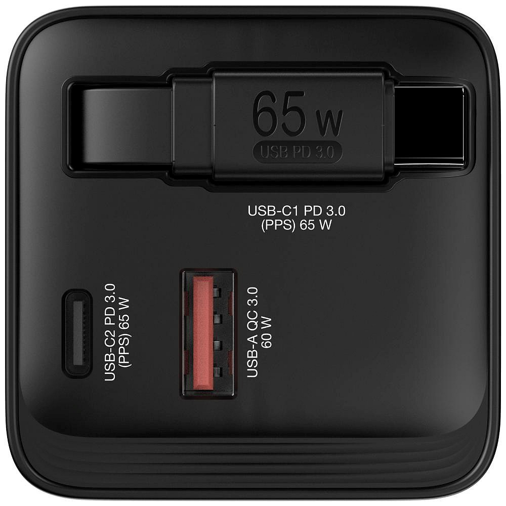 Akčné ponuky na váš e-mailNabíječka GaN 65W od společnosti Verbatim kombinuje porty USB-C® a USB-A a integrovaný zatahovací kabel USB-C v kompaktním provedení velikosti dlaně. Port USB-C a kabel podporují technologii PD 3.0 (Power Delivery) s výkonem 65 W a port USB-A podporuje technologii QC 3.0. Dokáže nabíjet až 3 zařízení současně. Ideální do kanceláře, domů nebo na cesty k napájení notebooku, tabletu, smartphonu, herních zařízení a dalších zařízení.
