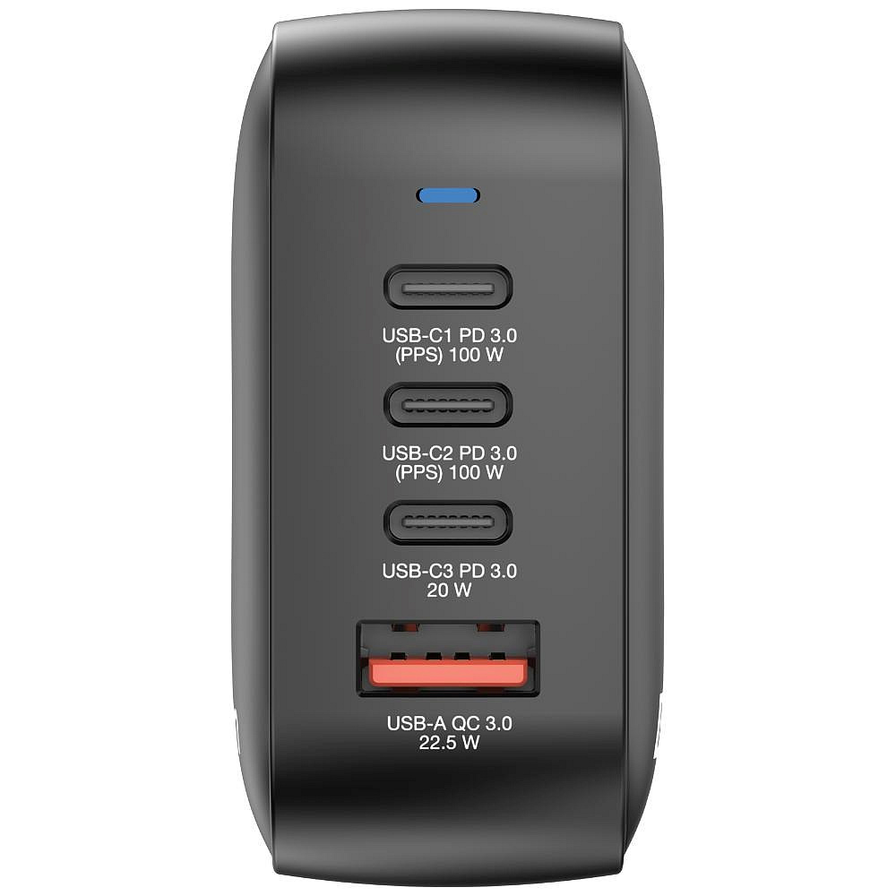 Akčné ponuky na váš e-mailMini GaN nabíječka Verbatim s výkonem 100 W kombinuje tři porty USB-C® a jeden port USB-A v kompaktním kapesním provedení. Dokáže nabíjet až 4 zařízení současně, dva z portů USB-C podporují PD 3.0 (Power Delivery) s výkonem 100 W, jeden podporuje PD 3.0 s výkonem 20 W, zatímco port USB-A podporuje QC 3.0. Ideální do kanceláře, domů nebo na cesty k napájení notebooku, tabletu, smartphonu, herních zařízení a dalších zařízení.