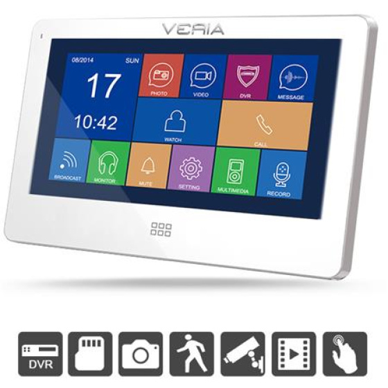 VERIA 7077 ponúka používateľovi komfortnú kombináciu videotelefonu a jednoduchého DVR monitorovacieho systému s možnosťou zachytenia snímku alebo videozáznamu využívajúceho napríklad tak sofistikované funkcie, ako je detekcia pohybu alebo podpora pripojenia externých CCTV kamier na sledovanie okolia.
