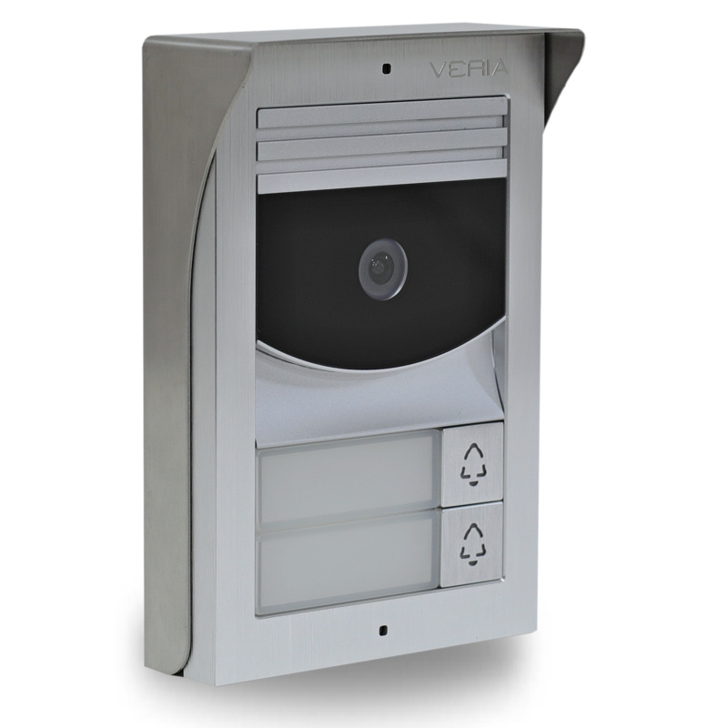 Vstupná kamerová jednotka VERIA 802 je určená pre 2-vodičové systémy domácich videotelefonov VERIA séria 2-WIRE. Vstupná farebná kamerová jednotka VERIA 802 v elegantnom kovovom anti-vandal prevedení určená pre domáce videotelefony VERIA.