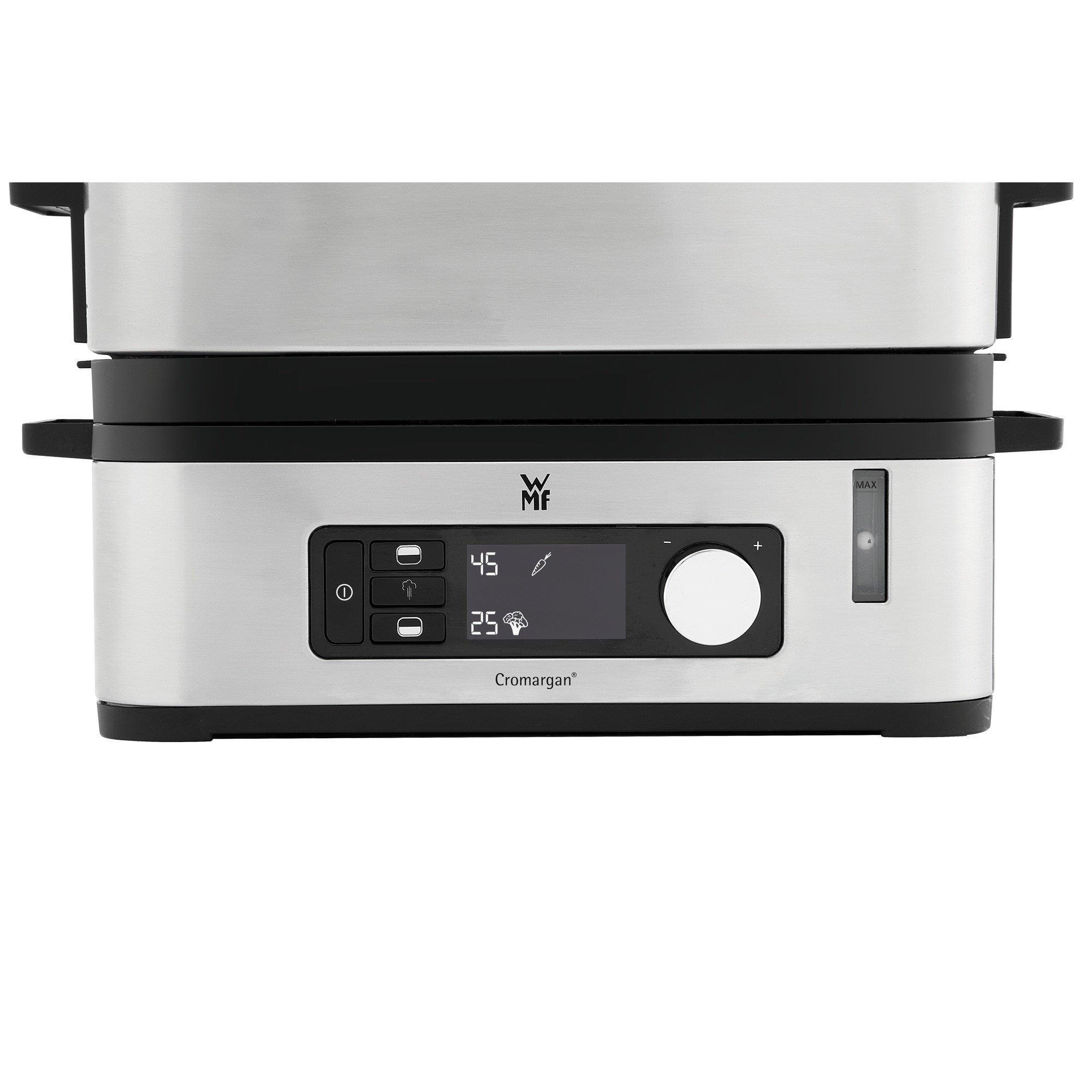 Akčné ponuky na váš e-mailParný hrniec WMF KITCHENminis® vyrobený z nerezovej ocele Cromargan® s kvalitným sklom víkom plní, čo sľúbil. Má kompaktný dizajn, je vhodný na zdravé varenie, neobsahuje bisfenol A a nie je viazaný na varič. Ide o najmenší systém na varenie z nerezovej ocele Cromargan® s rozmermi len 14,4 x 28,4 cm s výkonom 900 wattov, ktorý umožňuje pripravovať súčasne mäso, ryby, zeleninu a prílohy na dvoch plochách. Dokonalé varenie: vďaka technológii WMF Easy Steaming so dvomi samostatnými plochami na prípravu pokrmov, ktoré je možné samostatne nastaviť, môžete variť všetko naraz. Samotný proces varenia však začína neskôr podľa toho, ako ho nastavíte.