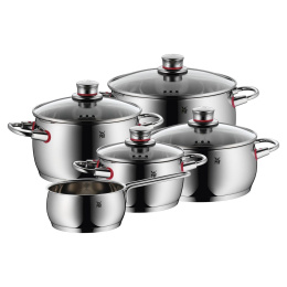 Akčné ponuky na váš e-mailElegantný dizajn radu Quality One pochádza z dielne Petra Rammingera. Jeho ambíciou je vyvinúť produkty, ktoré zjednodušujú varenie a zlepšujú každodenný život v kuchyni. Patentovaná technológia Cool+, rozpoznateľná červeným lemovaním okolo držadiel, umožňuje dotýkať sa nerezových úchytov bez popálenia rúk. Pokrievka sedí pevne a umožňuje riadené uvoľňovanie pary - vďaka tomu nedochádza k vylievaniu vriacej vody na sporák. Meradlo vo vnútri hrnca uľahčuje meranie a plnenie.