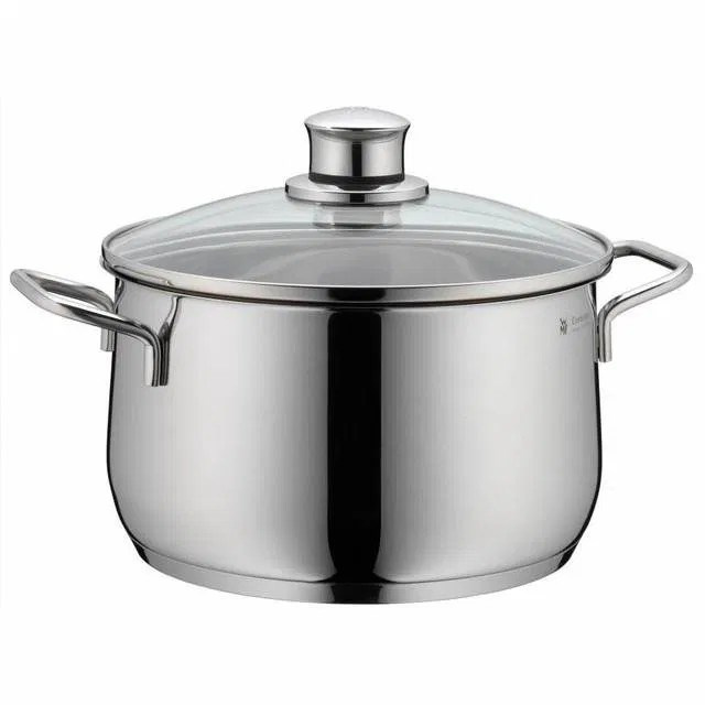 Akčné ponuky na váš e-mailHrnce radu Diadem Plus s vypuklým tvarom a priehľadnými sklenenými pokrievkami sú ideálne na energeticky úsporné varenie a štýlové servírovanie. Riad vyrobený z ušľachtilej nehrdzavejúcej ocele Cromargan® vyniká mimoriadnou odolnosťou proti poškriabaniu, je chuťovo neutrálny a veľmi ľahko sa udržiava. Vďaka univerzálnemu dnu TransTherm® je sada vhodná na všetky typy varných dosiek vrátane indukcie, pričom zaisťuje rovnomernú distribúciu tepla. Elegantný dizajn s oblými tvarmi dopĺňajú ergonomické rukoväte a široký odlievací okraj, ktorý zaručuje presné vylievanie obsahu bez nechceného kvapkania.