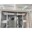 Rozvádzač na inštaláciu dátových a telekomunikačných zariadení, ventilácia s termostatom, podstavec, šedý.