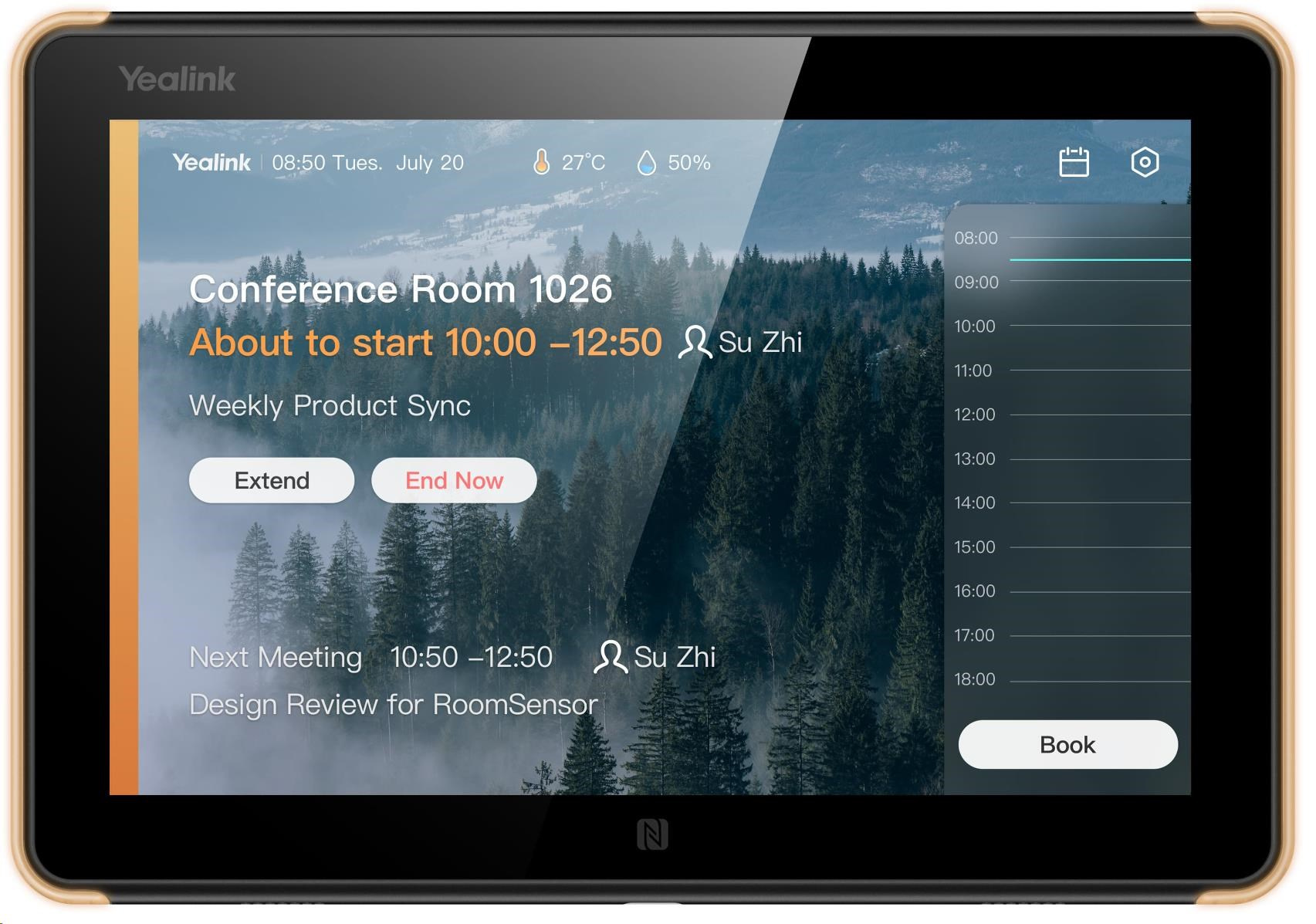 Akčné ponuky na váš e-mailYealink RoomPanel je profesionálne multifunkčné zariadenie na plánovanie miestnosti s 8-palcovou dotykovou obrazovkou, operačným systémom Android 9.0, plne RGB LED, duálnym mikrofónom a súpravou reproduktorov. Kompaktný panel typu všetko v jednom nielenže zobrazuje stav miestnosti v reálnom čase, ale umožňuje aj ad hoc rezervácie schôdzok alebo ďalších rezervácií zasadacích miestností, čím sa zvyšuje efektivita správy pracovného priestoru v podniku. Vďaka podpore PoE a dodávaným multi-voliteľným konzolám sa dá ľahko inštalovať na rôzne povrchy (betónová stena/sklo/drevo atď.).